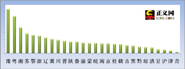 (图片说明:本图根据正义网舆情监测系统2010年上半年以来采集到的媒体报道、论坛帖文和博客文章数量,按地域进行分类抽样统计得出。)