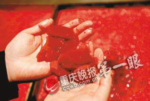 据悉,该加工厂去年9月从沙坪坝区搬迁至此,每天生产、销售毒血旺2.5吨左右。毒血旺主要销往江北区盘溪、沙区烈士墓和小龙坎等地的农贸市场。