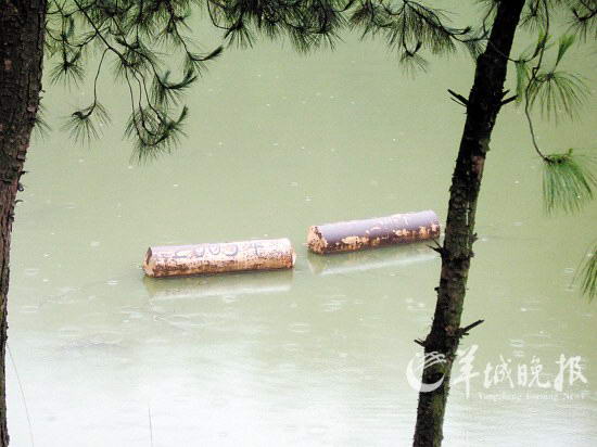 屋后,一个水潭被绿树青草环绕,上面漂着4个浮标,写着“2002”、“2003”、“2005”等字样,据说这些就是天价榨菜沉潭的年份。据涪陵榨菜集团此前公开表示,沉香榨菜最早的沉潭时间是2001年,迄今已有10年。
