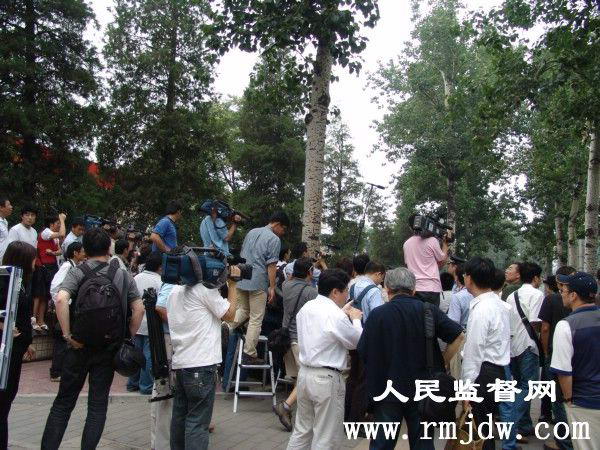 下午1点多钟,各国记者早早的来到日本国驻华使馆前。至2点十分,聚集在日本国驻华使馆前的各国记者达上百名,为保证使馆区的秩序,北京警方将前来采访的新闻记者们的证件验证登记,并划定了新闻记者采访区。