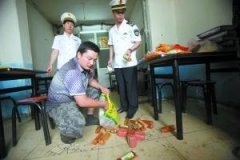 昨日,大兴区卫生监督所执法队员到本报曾报道的快餐店检查,发现了其从商贩仲某处购得的过期火腿肠。 工作人员把过期食品搬上货车。 商贩暂住地的窗户上贴有狗食字样。 执法人