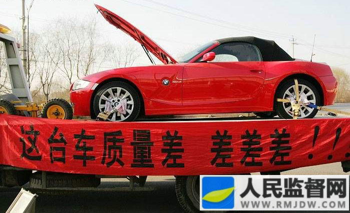 一辆崭新的宝马Z4敞篷跑车躺在一辆救援车的上面,上面写着“质量?信誉?不如买驴!”一看就知道,又是一个宝马车主关于质量方面的愤怒抗议,和宝马车主聊天中得知,车主是内蒙古人,在06年12月底花60多万在燕宝买了一辆宝马Z4,我想车主也是一个爱车的人,都没有直接开回去,而是用一辆平板车运到了内蒙,结果倒那边,发现车在行使过程中有严重的动力不足,后来仔细观察后发现,车漆有后喷漆的迹象,发动机上面的一颗螺丝已经严重随坏,车底盘竟然有普通锁丝。