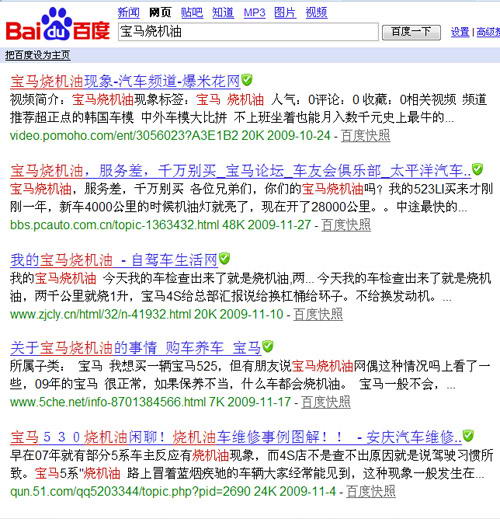 事实上我们看到了因为4000-6000公里就需要添加机油的宝马车主的投诉,更有甚者,一些宝马车主甚至在行驶2000-3000公里时就需要添加机油,而宝马所谓的正常现象,或者中国油品质量不过关的托词显然不能成为宝马汽车频频烧机油的解释。