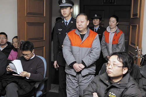 闫永喜和情人毛某被押进法庭。北京晨报李佳/摄