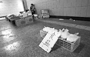 昨日,八里桥地下通道内有人兜售食盐。本报记者 周晓东 摄