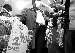 19日,(北京)崇文门一超市内,市民在选购食盐。17日,受传言影响,北京各大超市、市场的食盐遭到抢购,两日后市民消费趋于理性,各超市食盐销量逐渐恢复正常。本报记者 李冬 摄