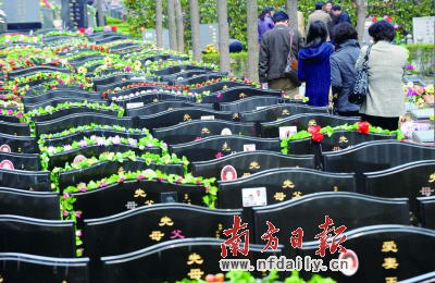 据了解,广州早早就制订了《广州市十区公益性骨灰楼规划》,十区共规划兴建公益性骨灰楼72间,增城市、从化市也各自制定了辖区公益性骨灰存放设施规划。目前,全市已投入使用的公益性骨灰楼近40间。虽然目前市民选择价格相对较低的骨灰寄存的还占多数,但越来越多的人开始购买墓地。