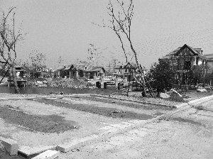 “虎落平川被狗欺”描述道:原阜宁森林公园字牌已不见踪影,大门口正重建新的门卫房,伸缩门已有雏形。再向北走,是一个长方形水塘,水已抽干,正在修缮配套工程。水塘东西两侧各已建成六幢二层西洋别墅,错落有致,别有风味。