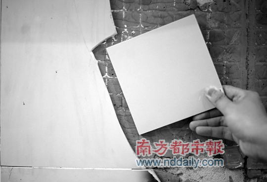 南都记者在建材市场买到的瓷砖(右),与一号线地铁站墙上原有瓷砖基本相同。