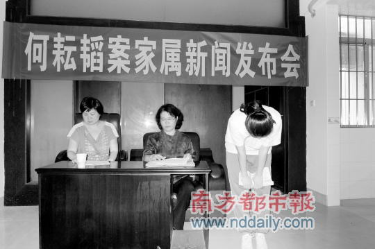 发布会结束,何耘韬的女儿何倩(化名)向在场媒体记者鞠躬致谢。