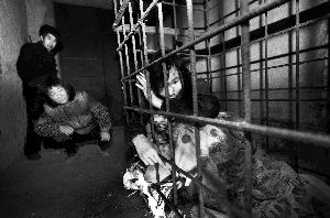 据报道,江苏泰州的朱家虎患病后花费八九万治疗没效果,家里负担不起继续治疗的费用,而朱家虎是个“武疯子”,会惹事伤人,妻子于是将他锁进了铁笼。