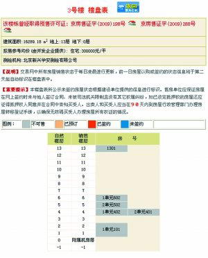 昨天下午,登录北京市房地产交易管理网。下午3时许,该项目的23套房源显示“未签约”。下午4时许,房源状态已显示为“不可售”。不过,每栋楼拟销售均价仍未变,如3号住宅楼“拟售参考均价(由开发企业提供):300000元/平方米”。