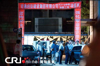 国际在线消息:2011年7月7日晚9点半左右,北京市第67中学抗震加固施工现场发生事故。一面防护墙突然倒塌,导致两名工人被埋身亡。8日,死者家属将4个花圈放在校门口,并质疑抗震加固工程的质量。校方和施工方均不接受采访。