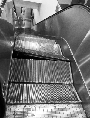 今日凌晨零时许,维修人员将3块电梯梯级取下,检查内部情况。