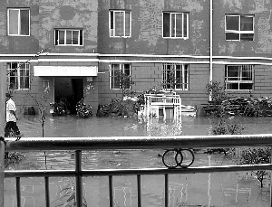 因为新村基建至今没有完工,水排不出去,所以一下雨,整个小区被水淹,“必须光着脚才能出门。”