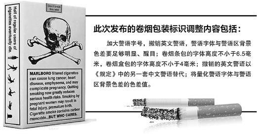加大警语字号,卷烟包装标识将进行调整 烟盒变丑陋为何这么难? 卷烟包装上的健康警告是健康信息最有效的资源之一。蔡华伟喻翩一制图 核心提示 中国烟草总公司日前下发通知,拟对现行的卷烟包装标识进行调整。消息一出,受到广泛关注。近年来,控烟专家多次呼吁改变烟草包装的警示标识,让其真正起到警示作用。新探健康发展研究中心副主任吴宜群则表示,此次卷烟包装标识调整,与世界卫生组织《烟草控制框架公约》的要求还有一定距离。 烟草包装该谁来设计? 在北京万惠超市红庙店,20多岁的小林买了包10元的中南海烟。 记者问他,烟盒有没有起到警示作用?他不加思考地说,没有。在记者的提醒下,小林翻了几下烟盒,指着烟盒的下半部说,“吸烟有害健康”老早以前在侧面,现在到正面了;多了一行字,“戒烟可减少对健康的危害”。背面的英文,他费了半天劲才明白意思。 2008年,国家烟草专卖局和质检总局联合制定了关于我国国内销售烟草包装上警示标识的规定,对我国境内生产的所有非出口卷烟和国外进口卷烟包装上的健康警语作出了具体规定:包括两组轮换使用的警语内容;警语应位于卷烟条、盒包装正面和背面;警语区域所占面积不应小于其所在面的30%。从2009年1月1日起,《境内卷烟包装标识的规定》(以下简称“《规定》”)正式实行。 此次发布的卷烟包装标识调整内容包括:加大警语字号,撤销英文警语,警语字体与警语区背景色差要足够明显、醒目。卷烟条包的字体高度不小于6.5毫米,卷烟盒包的字体高度不小于4毫米;撤销的英文警语以《规定》中的另一套中文警语替代;将量化警语字体与警语区背景色差的色差值,具体指标和检测方法另行通知。 中国疾控中心国家控烟办公室副主任杨杰说,由烟草总公司来制定烟草包装警语设计,不合理也不合法。根据《烟草控制框架公约》(以下简称“《公约》”)第11条规定,烟草使用的健康警语,应由政府制定。烟草专卖局和质检总局联合制定的《规定》,不能由烟草总公司来修订。 吴宜群认为,最了解烟草危害的政府部门是卫生部。世界上许多国家的警示标识内容,都是由政府卫生部门组织专家制定后,强制烟草企业执行的。烟盒上的警示标识也都附有“政府忠告”的字样。