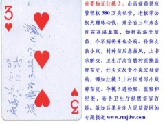 关于一张红桃3扑克牌的举报 中纪委驻卫生部纪检组: 我是山西高温变质疫苗受害小姑娘高小岚的姑姑,姓名:高凌,住址:太原市塑料公司宿舍,电话:15333619469