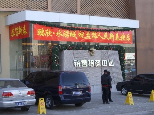 沈阳,2011年1月31日 网上舆论关注辽宁盘锦“最牛售楼处” 图为“最牛售楼处”外景(1月31日摄)。 近日,一则《盘锦引来了最牛开发商,售楼处建到了市人大》的帖子被各大网站转载,并引来网民的议论。“中国网事”记者深入实地,采访了各有关方面,以厘清这一“最牛售楼处”的真相。  新华社记者 陈梦阳 摄