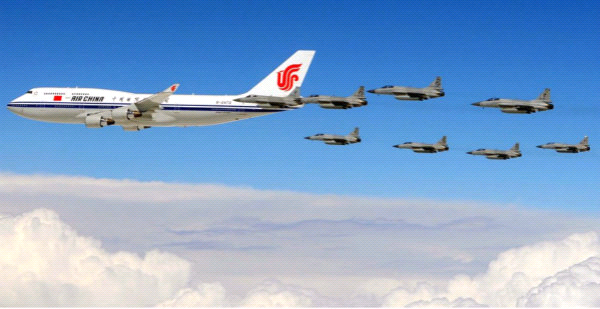 巴基斯坦空军准将法拉兹拍摄的8架“枭龙”战机护航习近平专机照片
