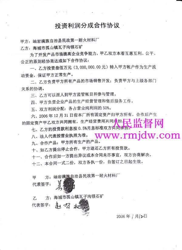 2009年11月8日,鞍山市政协委员、原岫岩县民政第一耐火材料厂法人代表吴云富找到记者,述说了他与现任鞍山市人民检察院常务副检察长赵余龙从“合作”办厂到千万资产被霸占的前后经过。
