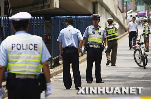 7月1日,多名警察正在勘察案发现场。新华社记者 裴鑫摄