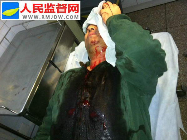 人民监督网记者接到举报后,10月31日下午赶到北京304医院,见到了住院治疗的许建涛先生,许先生头部缠满绷带,头发和枕头上残留大片血迹,正在输液治疗,但虚弱得说不出话来。