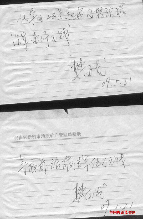由于在2006年的招警考试中樊留发也没向先前说的那样为孩子安排工作。张先生多次去新密向他询问情况,他总是以内定指标马上就下来搪塞。在多次去新密的过程中张先生了解到樊人品不好,还曾在洛阳欠人钱,被人拿刀追砍逼债。招警考试结束以后,张先生已经放弃了让樊留发安排孩子工作的念头,常住新密,希望能将被他骗走的钱要回来,在多次将他堵在家中的情况下,樊留发给张先生补了48万元的欠条,欠条中却仅仅说是借款,未说是运作招警考试的钱。