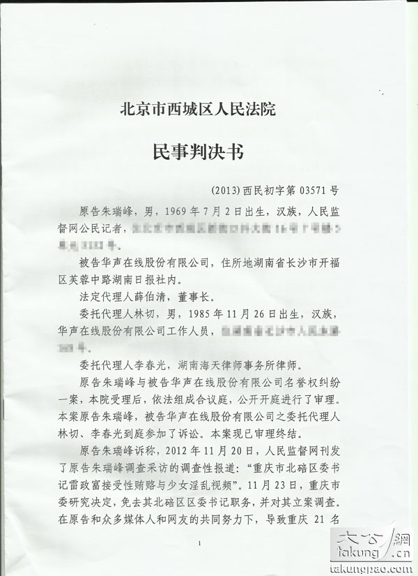 2014年5月23日,人民监督网记者朱瑞峰在腾讯、新浪微博称:感谢各位网友对人民监督网的监督,对于网络上对我实施辱骂,人身攻击和诽谤的5毛和小人,我向来不予理会,但对于给他们提供平台的官方喉舌媒体,我会拿起法律武器,让其付出沉痛的代价。附:羊城晚报集团【民营经济报】和湖南日报集团【华声在线】的败诉文书。