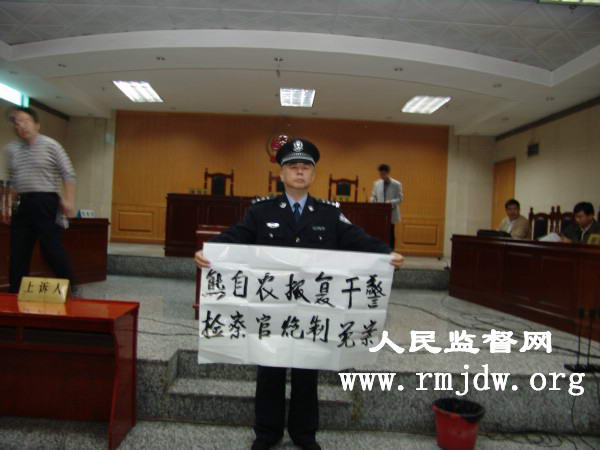 人民监督网讯:(记者朱瑞峰湖北襄樊报道)2008年10月9日9点,在湖北省襄樊市中级人民法院地下审判一庭(地下室),湖北省襄南监狱一级警督张德勇头戴警徽、身着警服端坐上诉席上。从法庭大门走进来的襄樊市中级人民法院审判庭审判长、审判员等三名法官及襄樊市人民检察院的两名支持公诉的检察官看到此情景,惊讶的迅速转过身来,退出法庭门外。